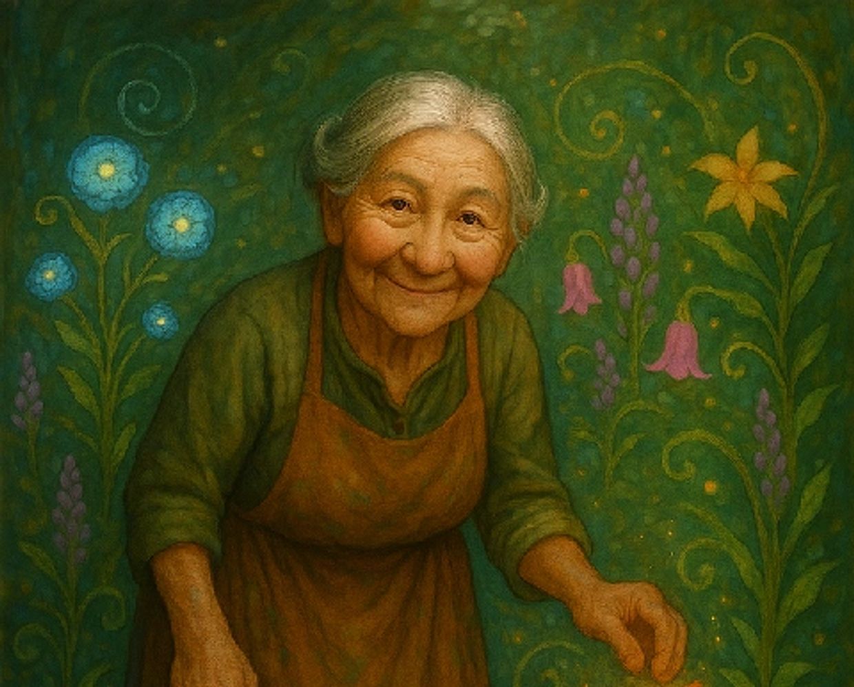 A familiar looking old woman stood among them, barefoot in the mud. She smiled.